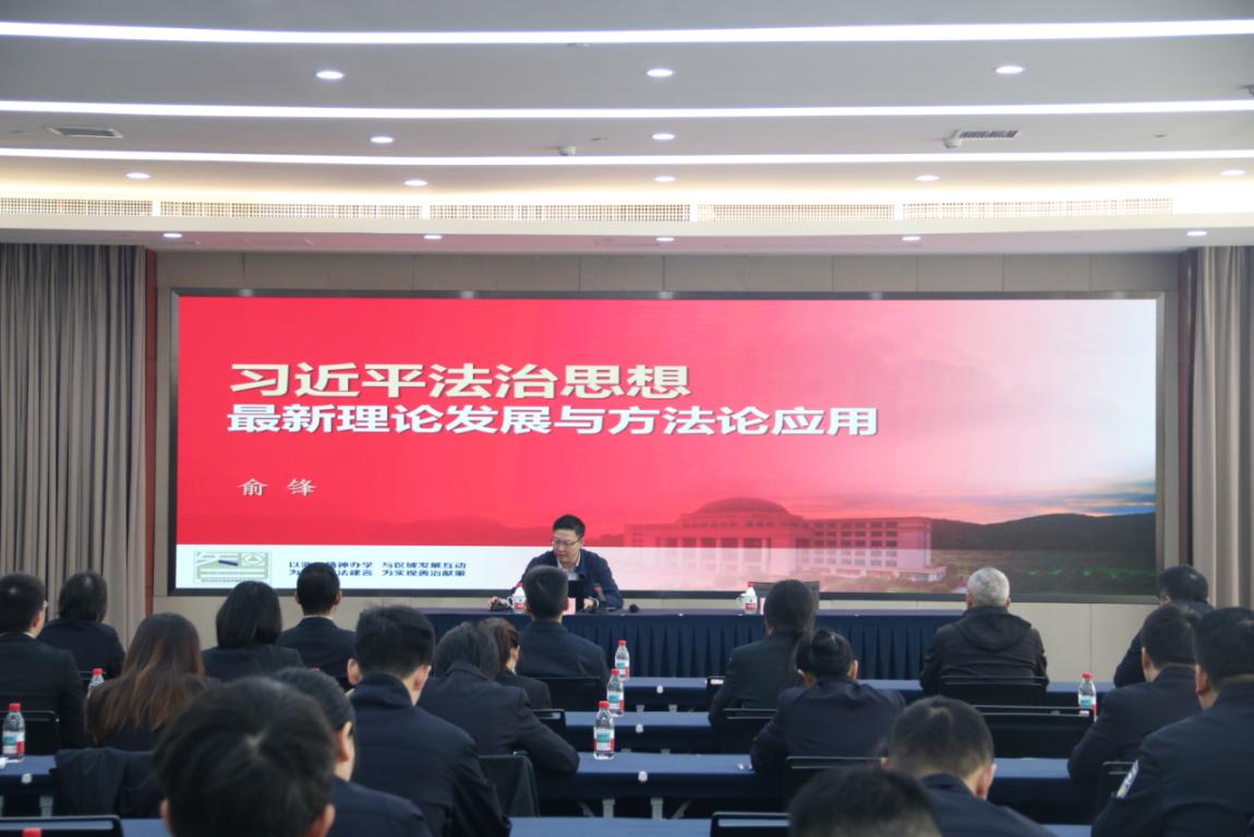 俞教授從理論創(chuàng)新與方法論實踐兩個核心維度,深刻闡述了習近平法治思想最新理論發(fā)展,系統(tǒng)梳理了“法治軌道論”的拓展深化、“法治體系”的完善升級以及“更高水平平安中國、法治中國”的目標凝練,并緊密結合綜治中心建設、信訪工作法治化等具體實踐,對核心方法論的精髓與應用進行了深入淺出地講解。